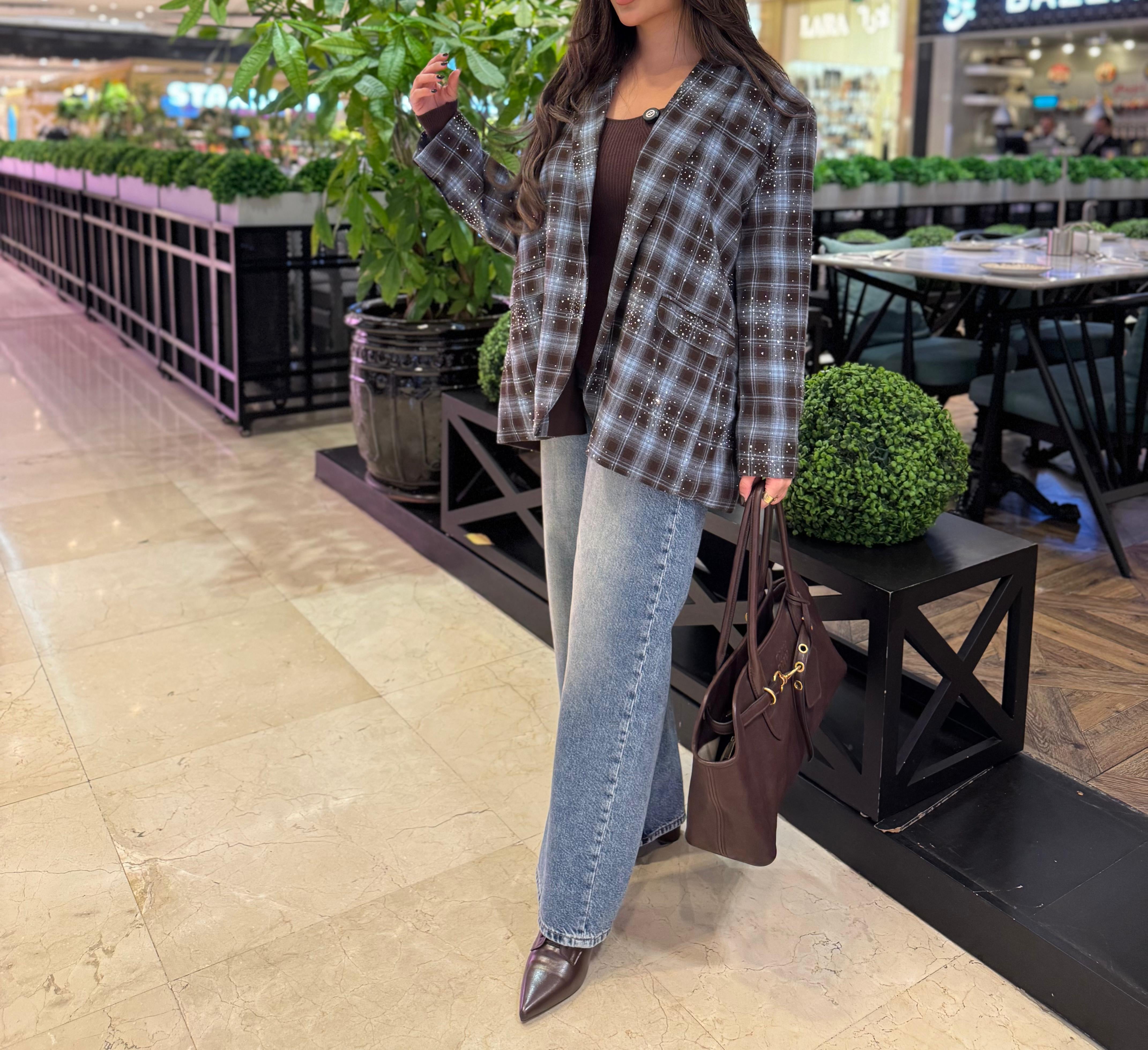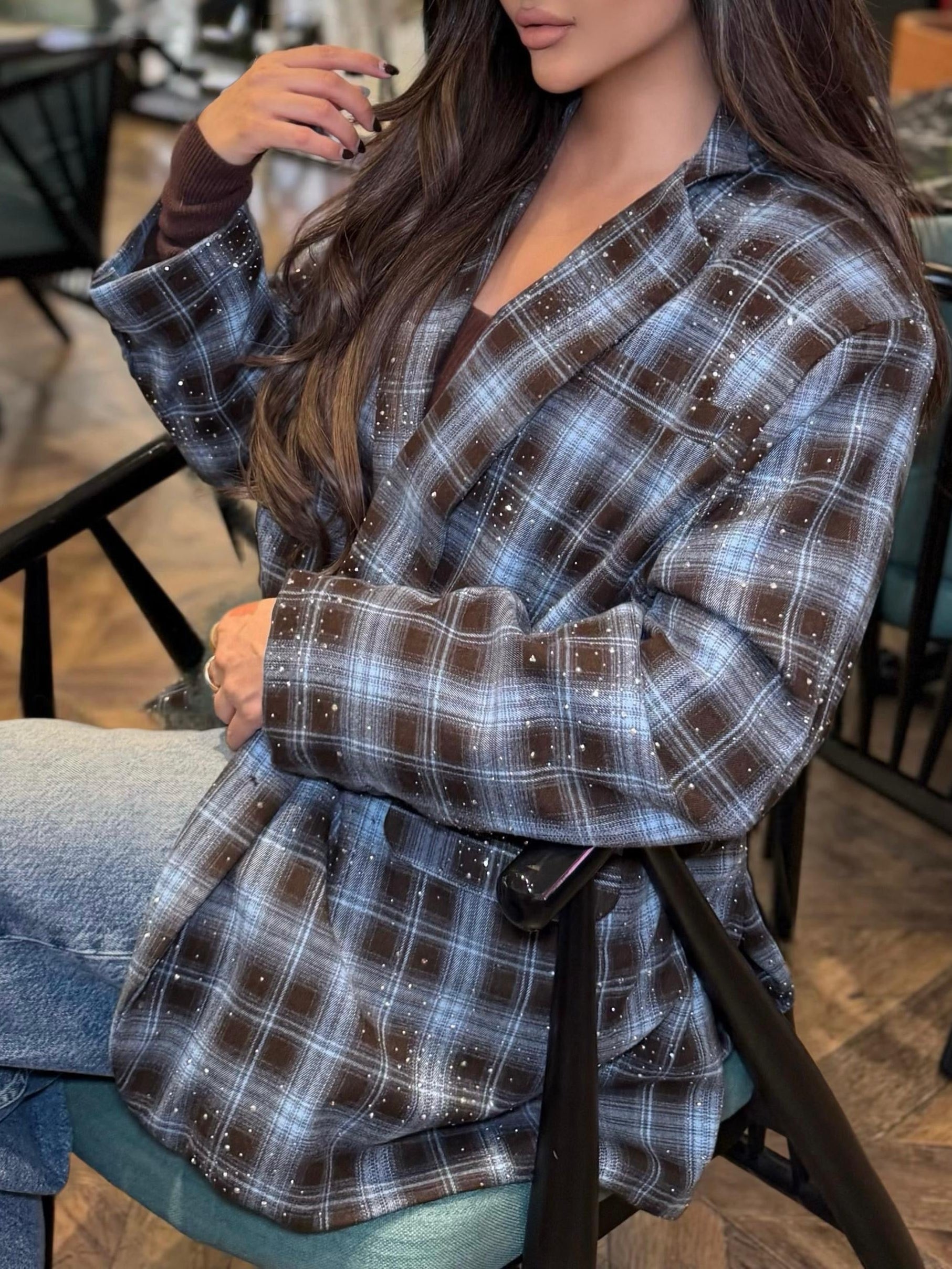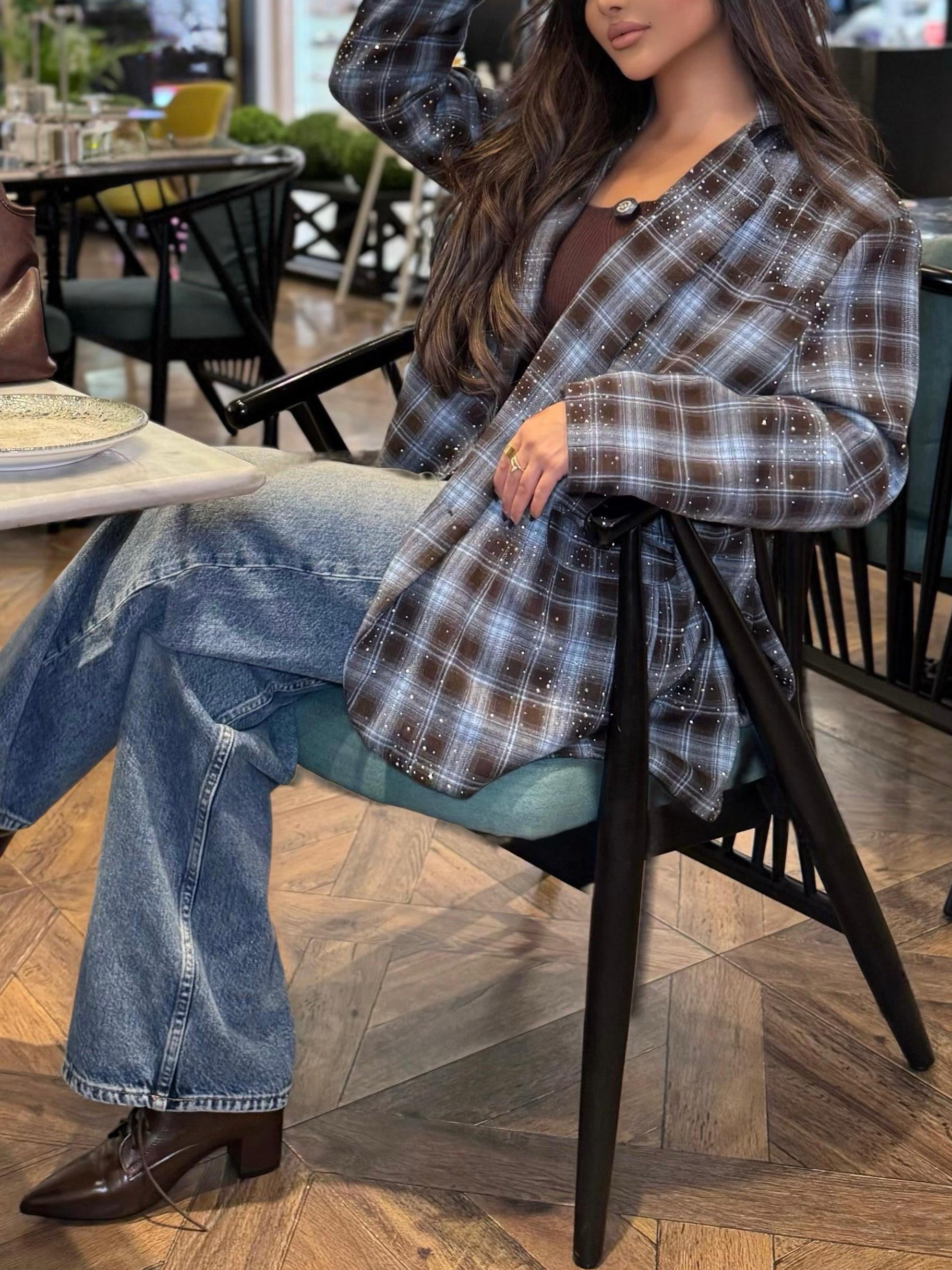 A chic plaid blazer with subtle sparkle, perfect for effortless everyday style